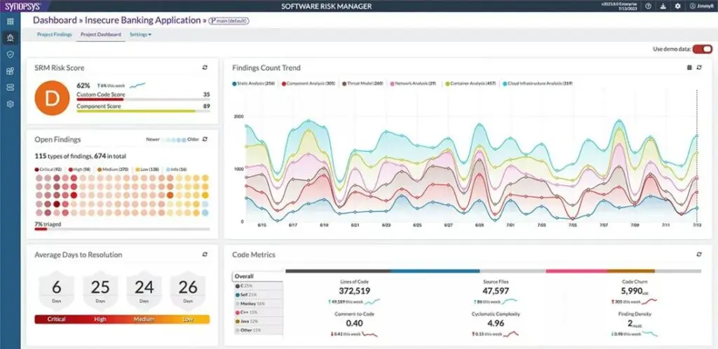 Software Risk Manager™, 150’den fazla test çözümünün bulguları için birleşik bir havuz sağlayarak AST için tek bir gerçek kaynağı oluşturur ve kurumunuz için yazılım riskinin merkezi bir görünümünü sunar: Ne test edildi, ne bulundu ve ne düzeltildi. Software Risk Manager, geliştiricilere önce neyi düzeltecekleri konusunda öncelikli rehberlik sağlar ve artan bulgu hacmini anlamalarına yardımcı olur.